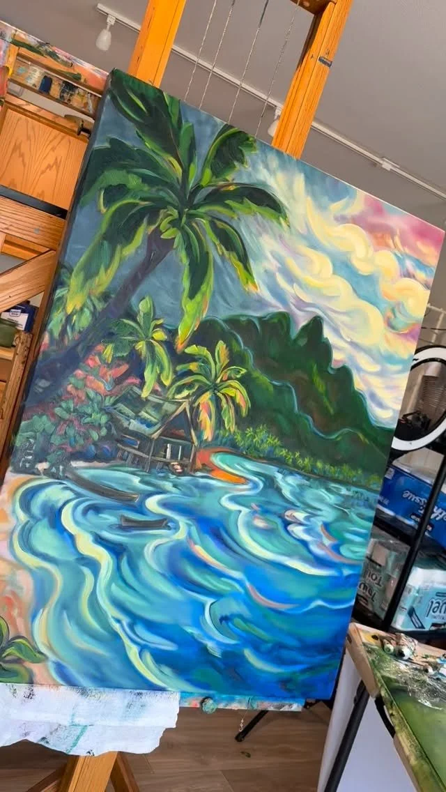 Whether it's a captivating canvas, archival print, or custom surfboard, Kim celebrates the vibrant color, variety and the rich Polynesian culture of Maui in every one of her pieces. Collectors rave about Kim's Paia Gallery visits as "one of the coolest things you can do on Maui!" It's a Maui must-see!